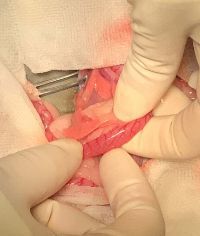 治療としてはとてもリスクが高いのですが、全身麻酔下で、お腹を開けて膿瘍を取り出すという方法があります。